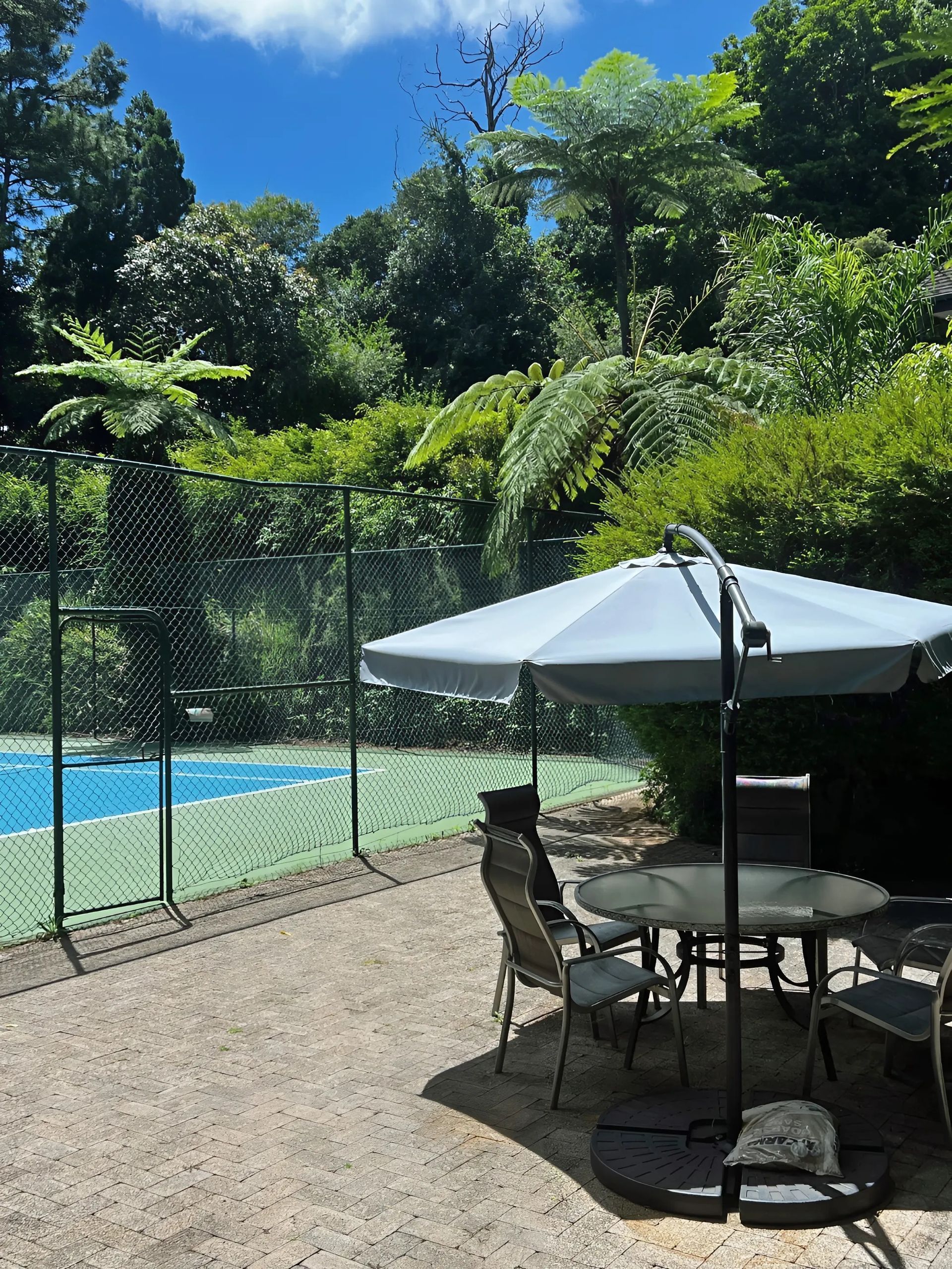 - Barbecue gazebo overlooking the full-size tennis court, perfect for family gatherings or casual meals